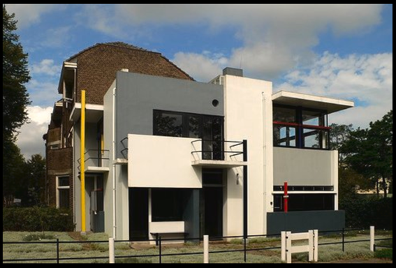 “The mother art is architecture. Without an architecture of our own we have no soul of our own civilization.” — Frank Lloyd WrightWright reconoce algo esencial: la arquitectura no es un simple escenario para el arte, sino su matriz cultural. A la vez, el arte tiene la capacidad de transformar la arquitectura en experiencia sensible. A principios del siglo XX, distintos movimientos —del art nouveau al modernismo y, más tarde, el deconstructivismo— exploran esa frontera difusa. Escultura, pintura, objeto y espacio se funden en una misma búsqueda: que la forma hable, que la estructura sea emoción. En este contexto, la arquitectura se nutre de las investigaciones del arte, y el arte encuentra en la arquitectura un soporte expandido. Gerrit Rietveld, por ejemplo, utiliza los nuevos materiales y sistemas constructivos para desarrollar viviendas como la casa Schröder, donde planos horizontales y verticales se disponen en composiciones asimétricas que ponen a prueba el equilibrio del conjunto. Es una arquitectura en plena sintonía con el espíritu de De Stijl, cuyos representantes —Piet Mondrian, Theo van Doesburg— investigan la reducción del lenguaje plástico a planos, líneas y colores primarios. La casa deja de ser solo un objeto funcional para convertirse en un espacio donde las ideas de un movimiento artístico se hacen habitables.